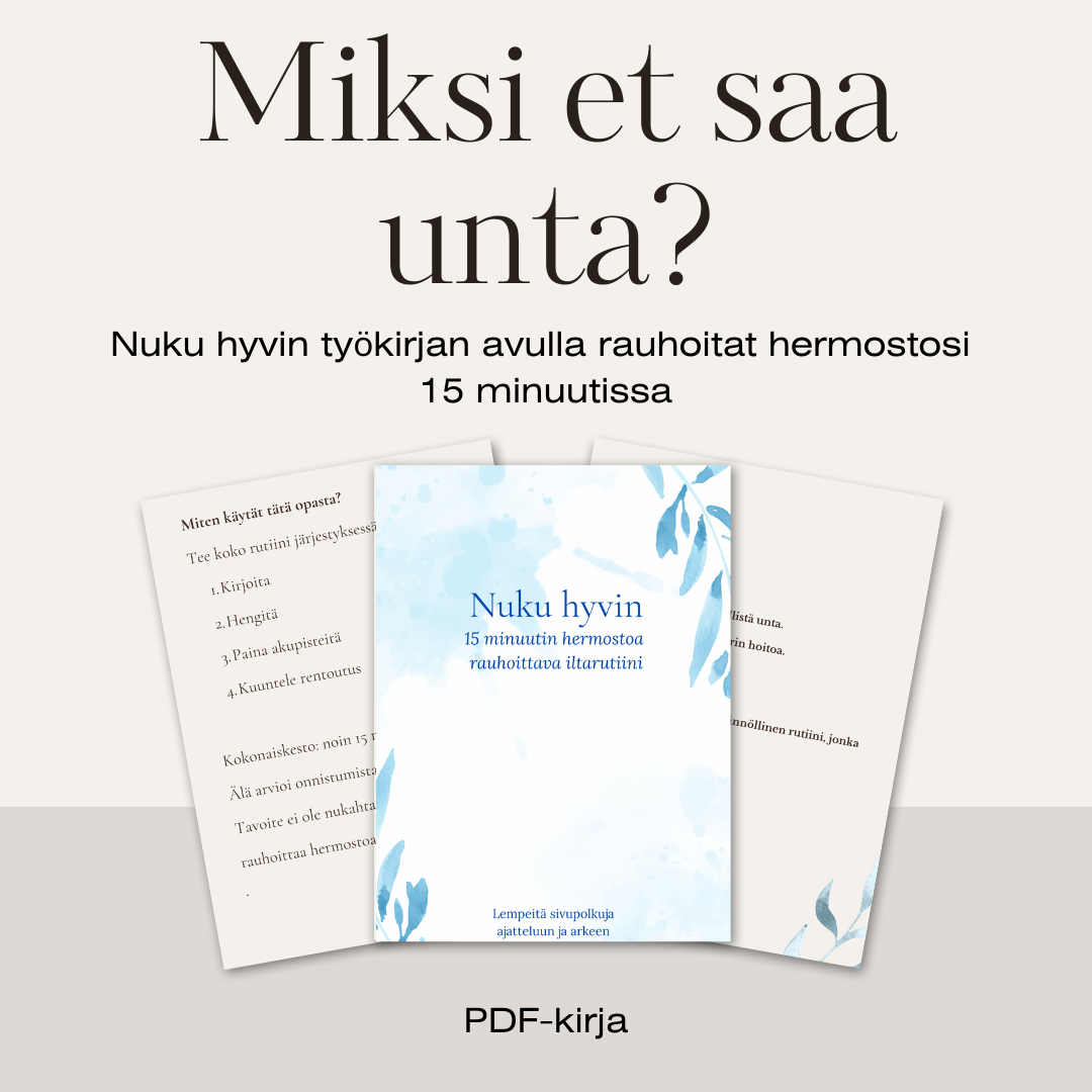 Hyvä uutinen on, että tähän voi vaikuttaa luonnollisin keinoin. Hermoston rauhoittaminen, hengitysharjoitukset, rentoutumistekniikat ja toimiva iltarutiini nukahtamiseen voivat vähentää yöheräilyä, syventää unta ja helpottaa takaisin uneen vaipumista, vaikka heräilisikin yöllä. Kun iltarutiini tukee palauttavaa unta, yöheräily vähenee ja kokonaisvaltainen hyvinvointi paranee.