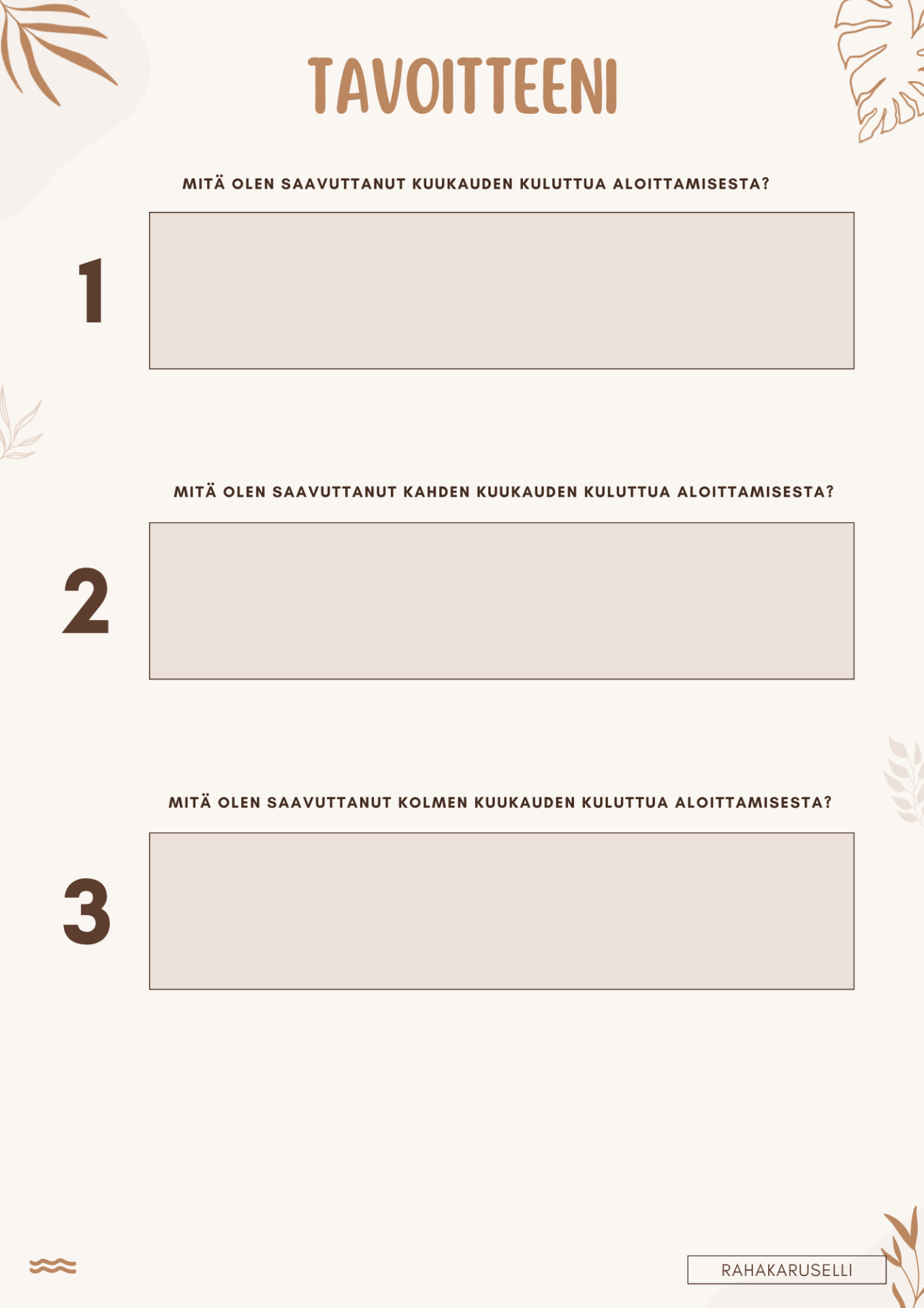 -Tavoitesivuja tukemaan tavoitteiden asettamista