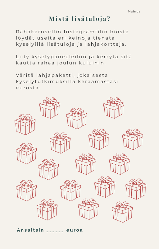 Säästä jouluksi 100 € – neljän viikon säästöhaaste